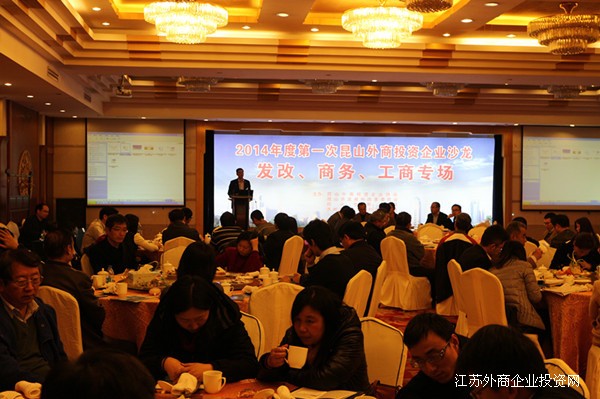 3月20日下午,昆山市发改委、昆山市商务局、昆山工商局和昆山市外商投资企业协会联合举办今年首场外商投资企业沙龙—发改、商务、工商专场,相关部门就最新涉企政策和近期服务举措向我市85家外资企业负责人进行宣讲,并解答企业代表提出的热点问题。副市长沈晓明,商务局局张峰局长、朱晓江副局长及发改委、工商局分管领导出席沙龙活动。 活动中,昆山工商局、市发改委、市商务局分别就注册资本登记制度改革、审批立项改革、商业保理前景等进行了宣讲。同时,与会企业代表就自身关心的话题与部门负责人进行了面对面的沟通交流,现场来了一次集中充电。